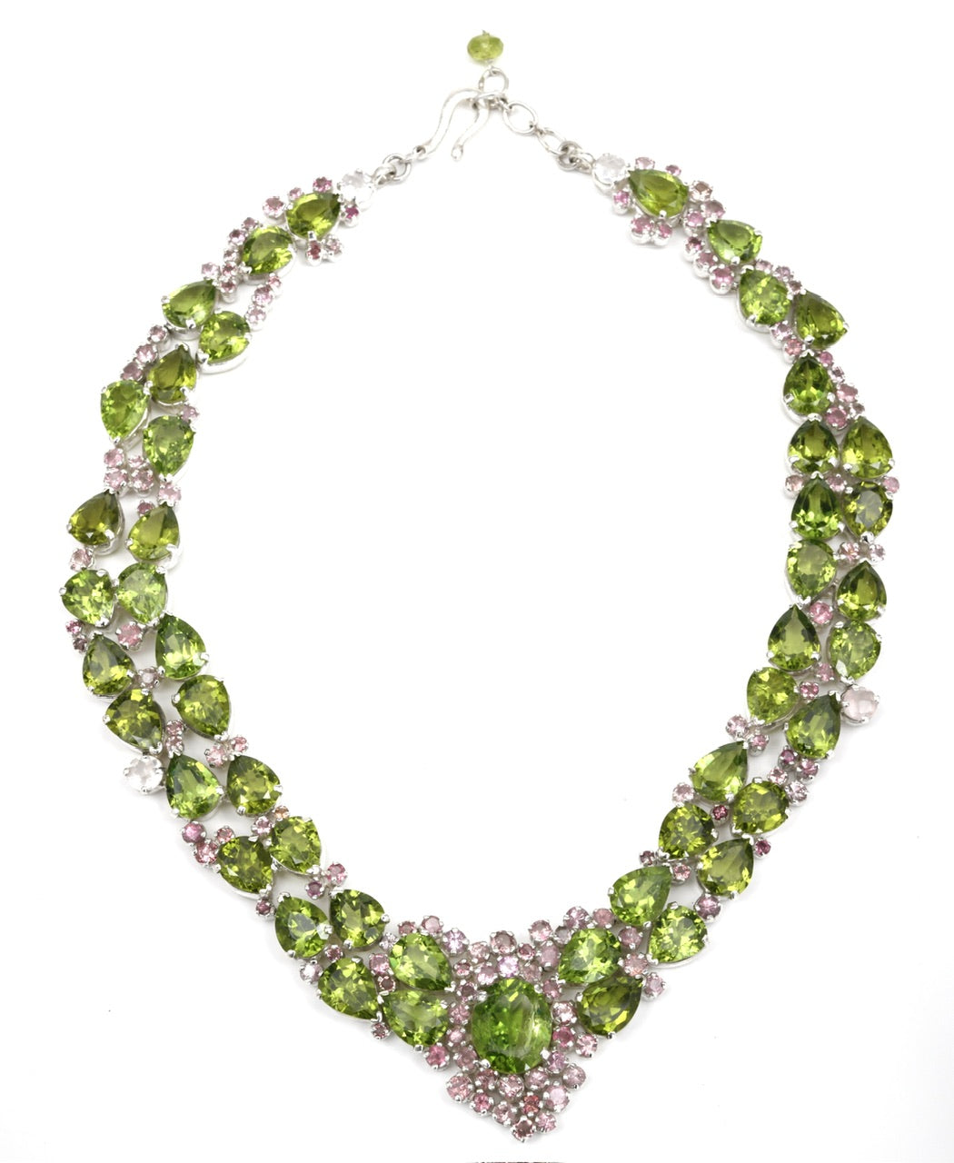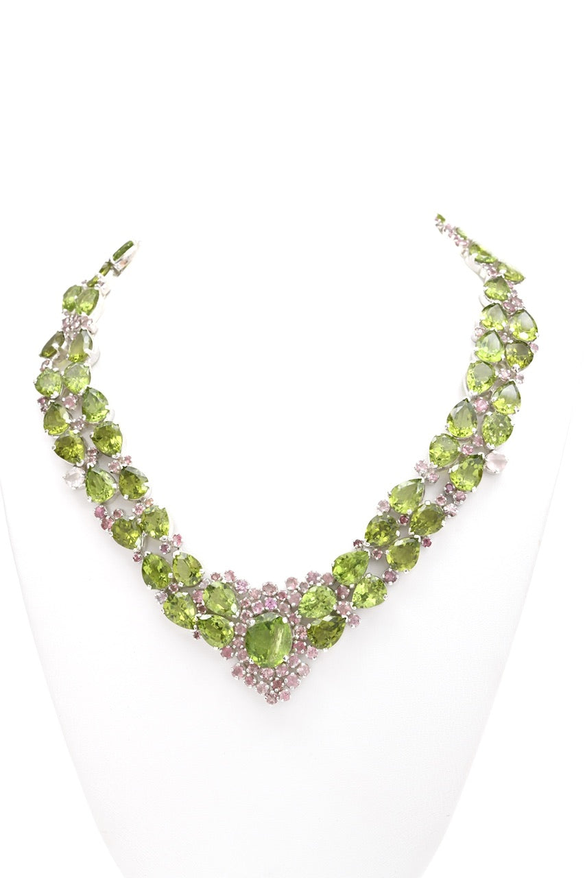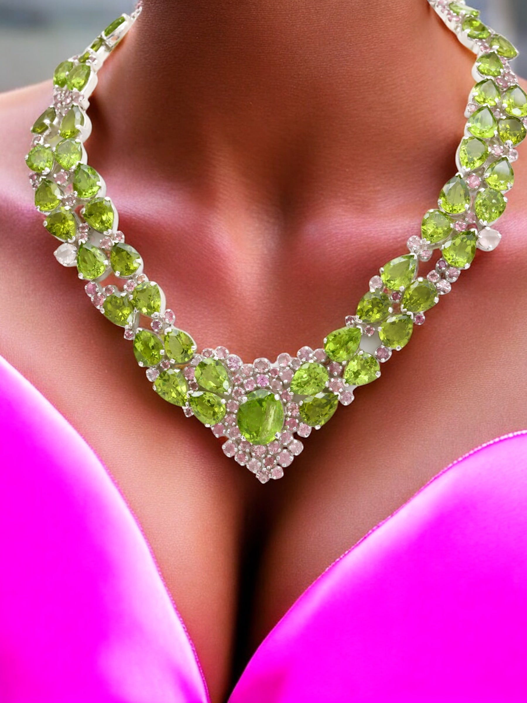 Regal, refreshing elegance! A captivating necklace with peridot, pink sapphire, and pink tourmaline. One of a kind perfection!