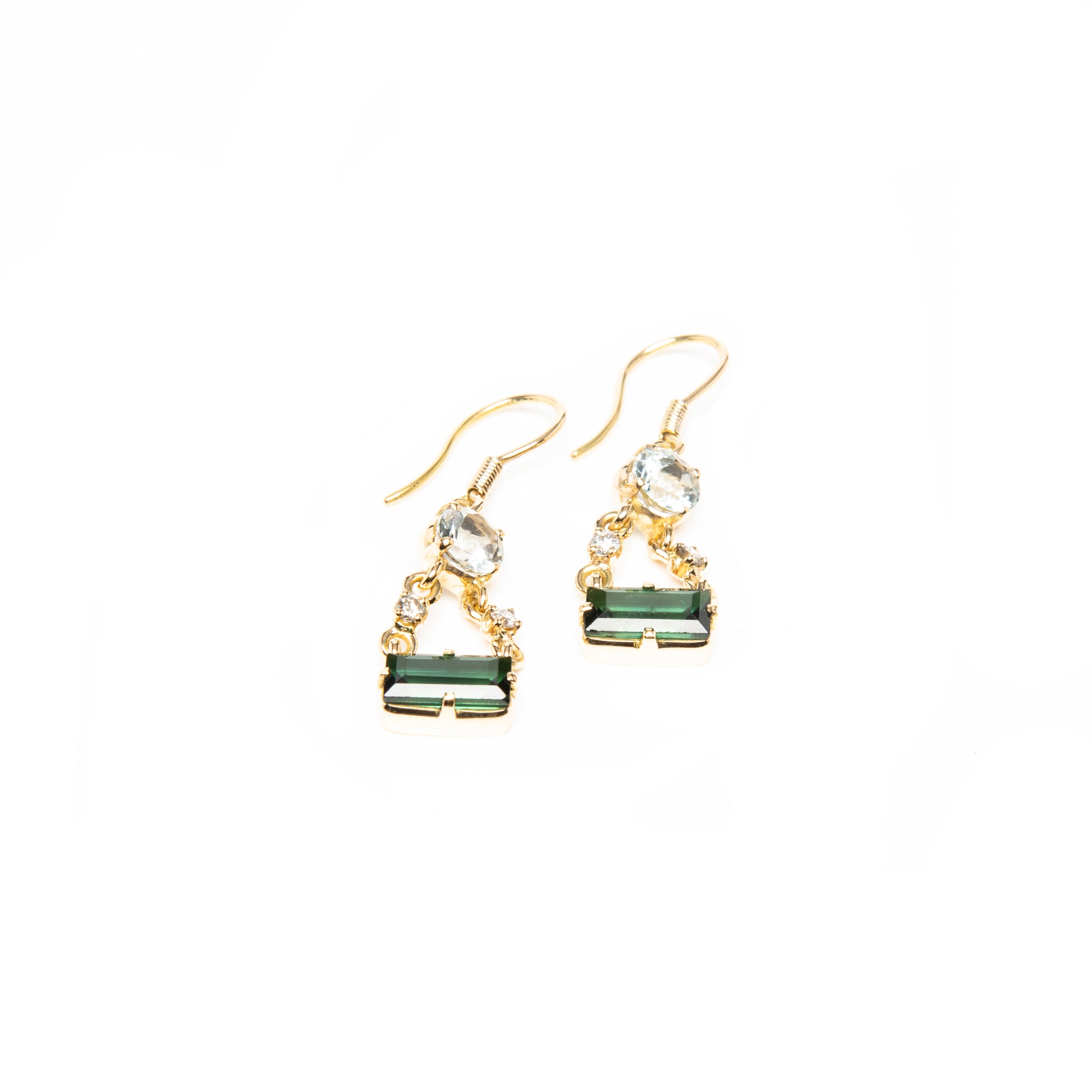 Aquamarine is diamond linked to this dark green flawless chrome tourmaline for an artistic design, eye catching and inspiring.