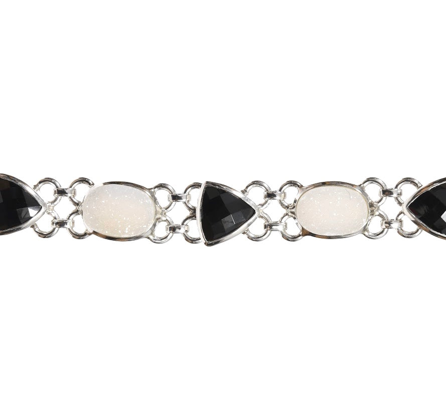 Brilliant white druzy and black spinel! Neutral tones, everyday wear! 6.75”-8”