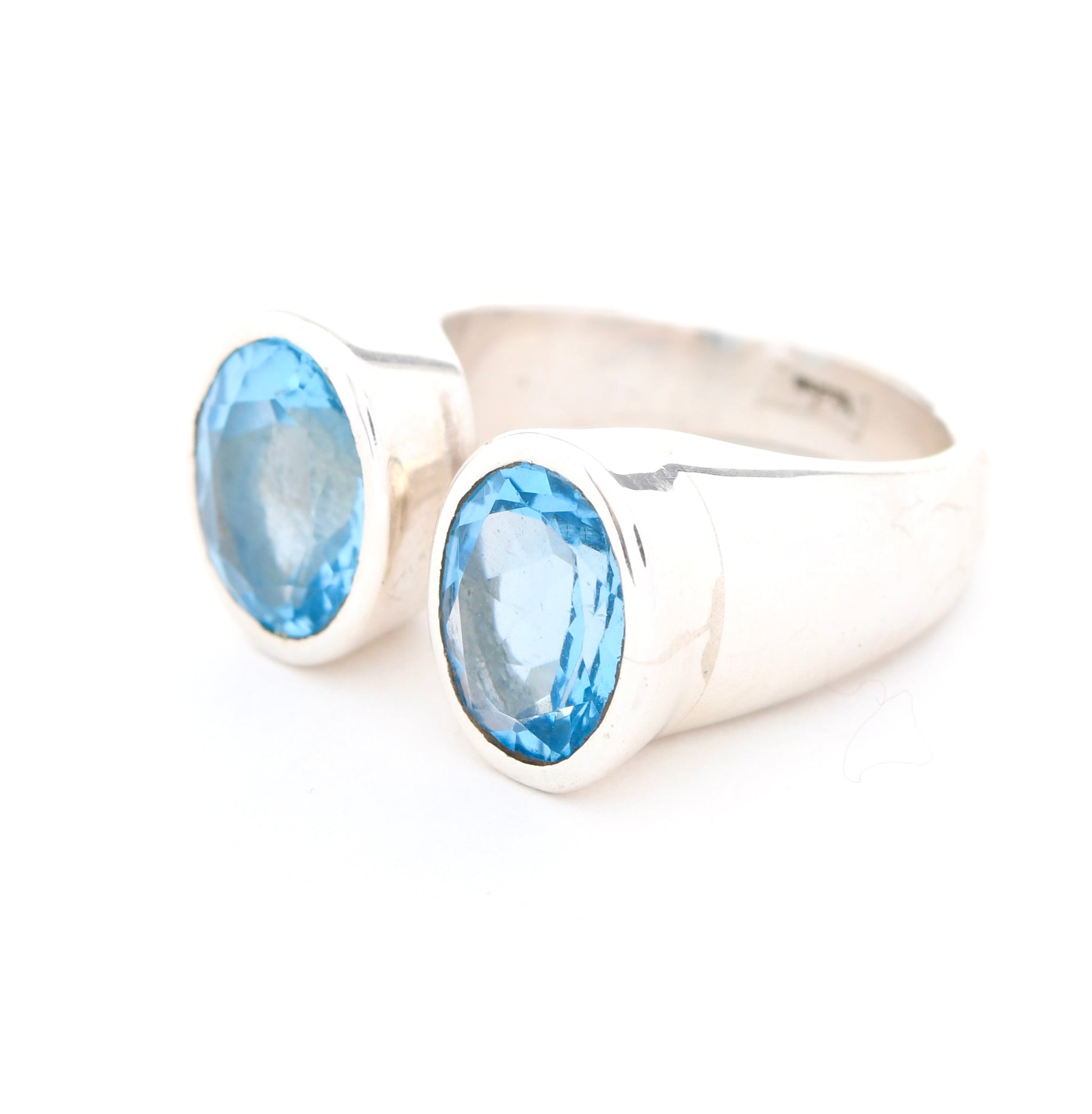 A perfect open two gemstone ring with brilliant blue topaz and sapphire blue kyanite in sterling silver. 7mm gemstones, slightly adjust to 1 size above.