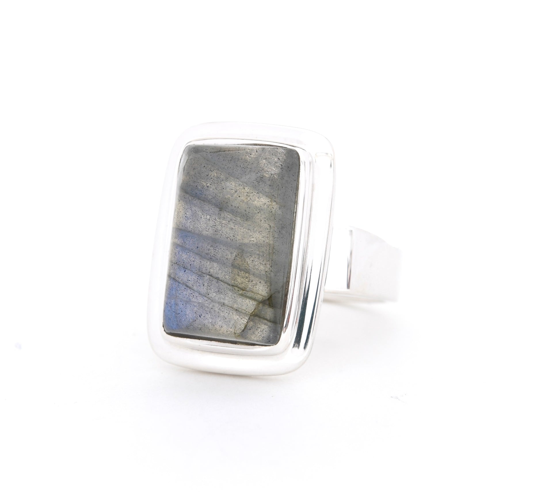 A beautiful flash of color, mystic and true. Emerald cut cabochon Labradorite in nickel free 0.965 sterling silver.