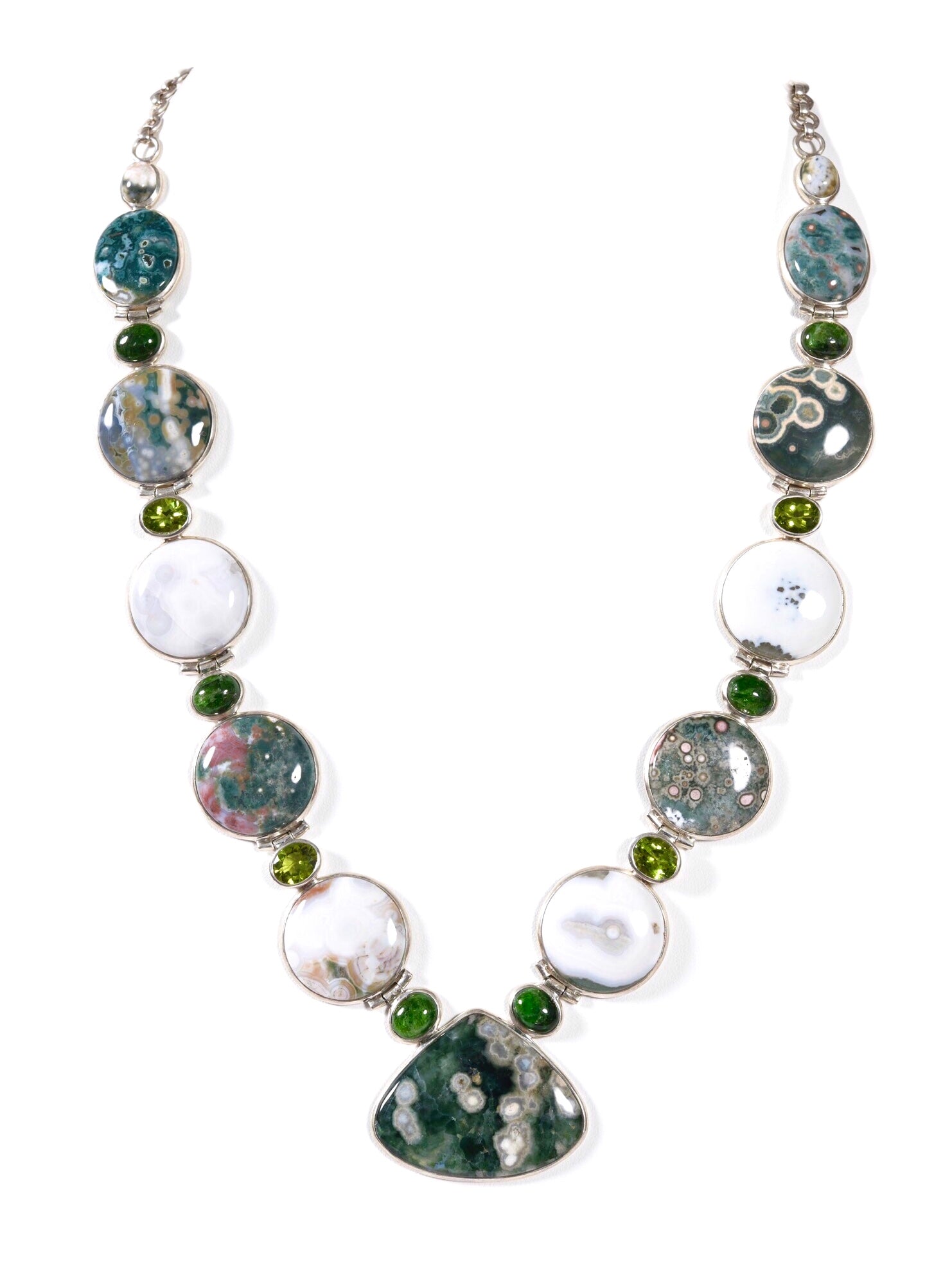 Green and white toned Ocean Jasper with aventurine, and peridot, perfectly hinged together for a stunning display of beauty!