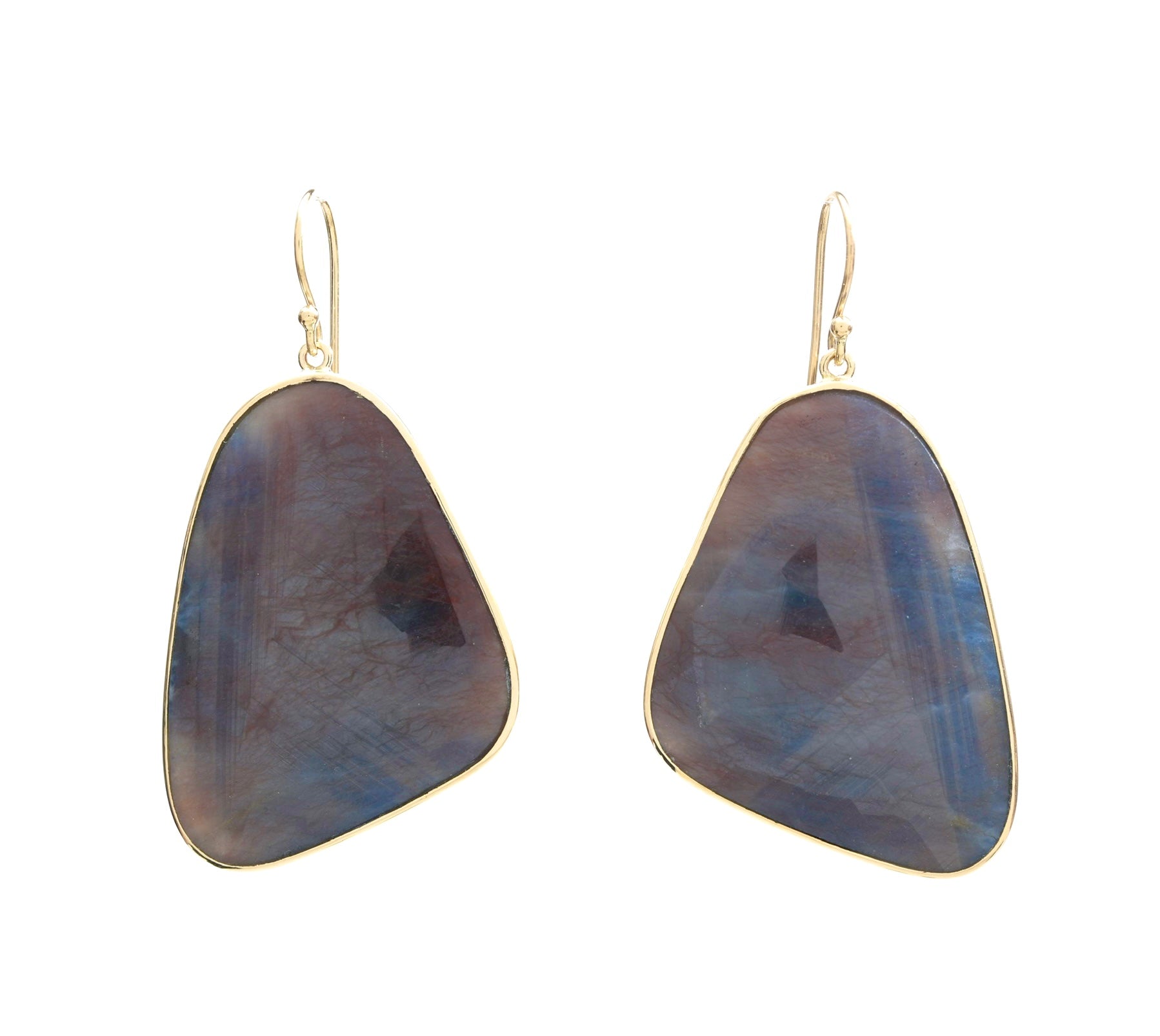 Elegant, unique, artistic, versatile and fashionable and extremely unique cut. Shimmering chocolate sapphire in 18k wears perfect on any occasion! Very light weight and large for the perfect statement earrings!
