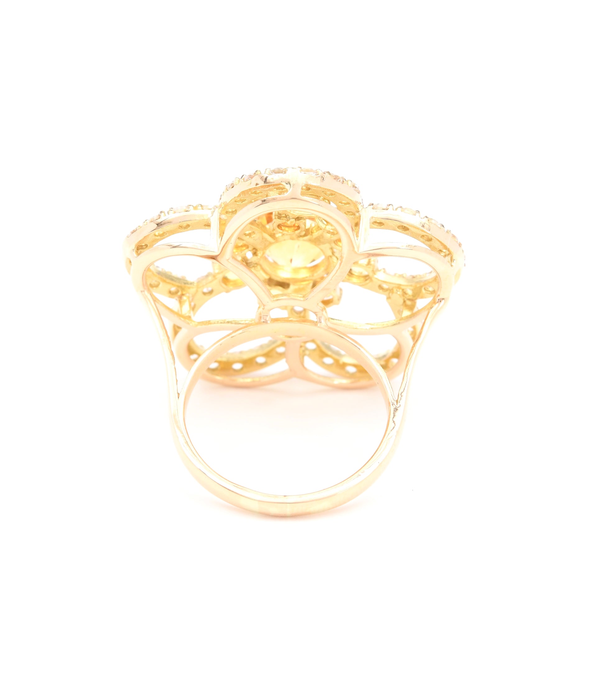 Gaze at the stars and you see flowers. Gaze at flowers and you see stars. Organic asymmetry within symmetry. The vague but lucid image of beauty enchants us in our dreams under celestial skies. This design inspires the impression of the natural plumeria artistically. It creates uplifting, light, beautiful, happy feelings. White sapphire, yellow sapphire and citrine in 18k yellow gold.