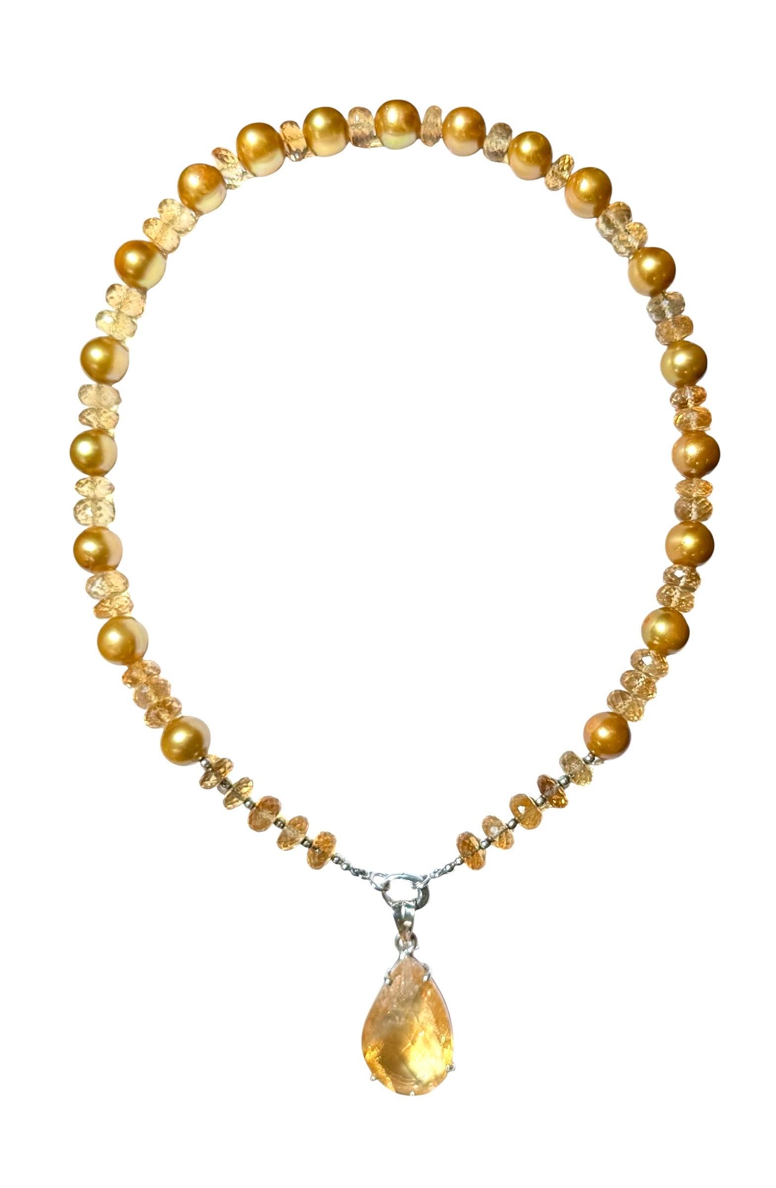 Elegant, casual, radiant and soft, Vanetta as a unique combination of golden citrine and golden pearls with a detachable citrine pendant. Wear casual or formal and glow with all the radiance of the golden sun!