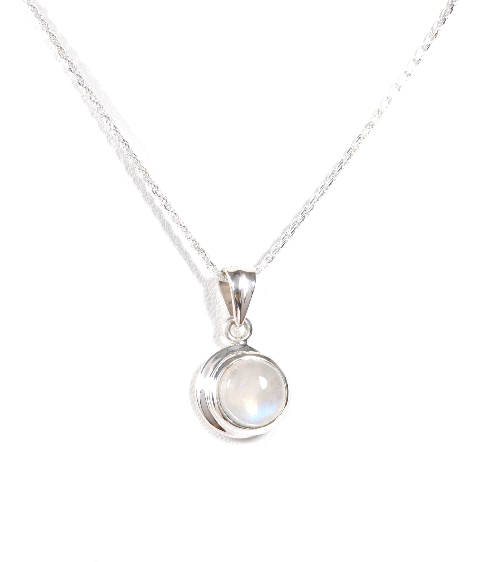 A perfectly simple everyday piece to wear for any occasion. Rainbow moonstone in sterling silver.