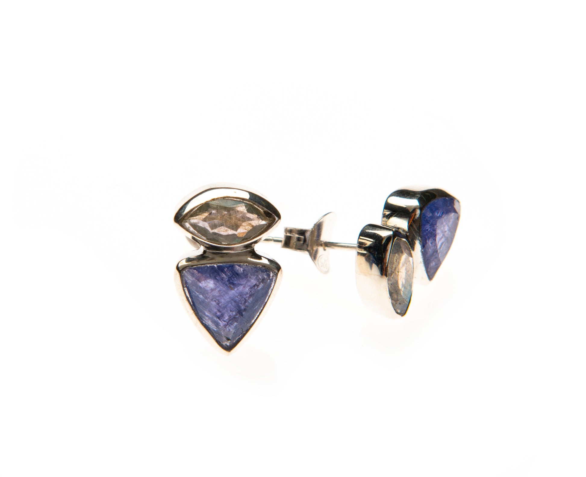 Mystic Labradorite with triangular tanzanite. Casual elegance with an edge. Length=0.5”