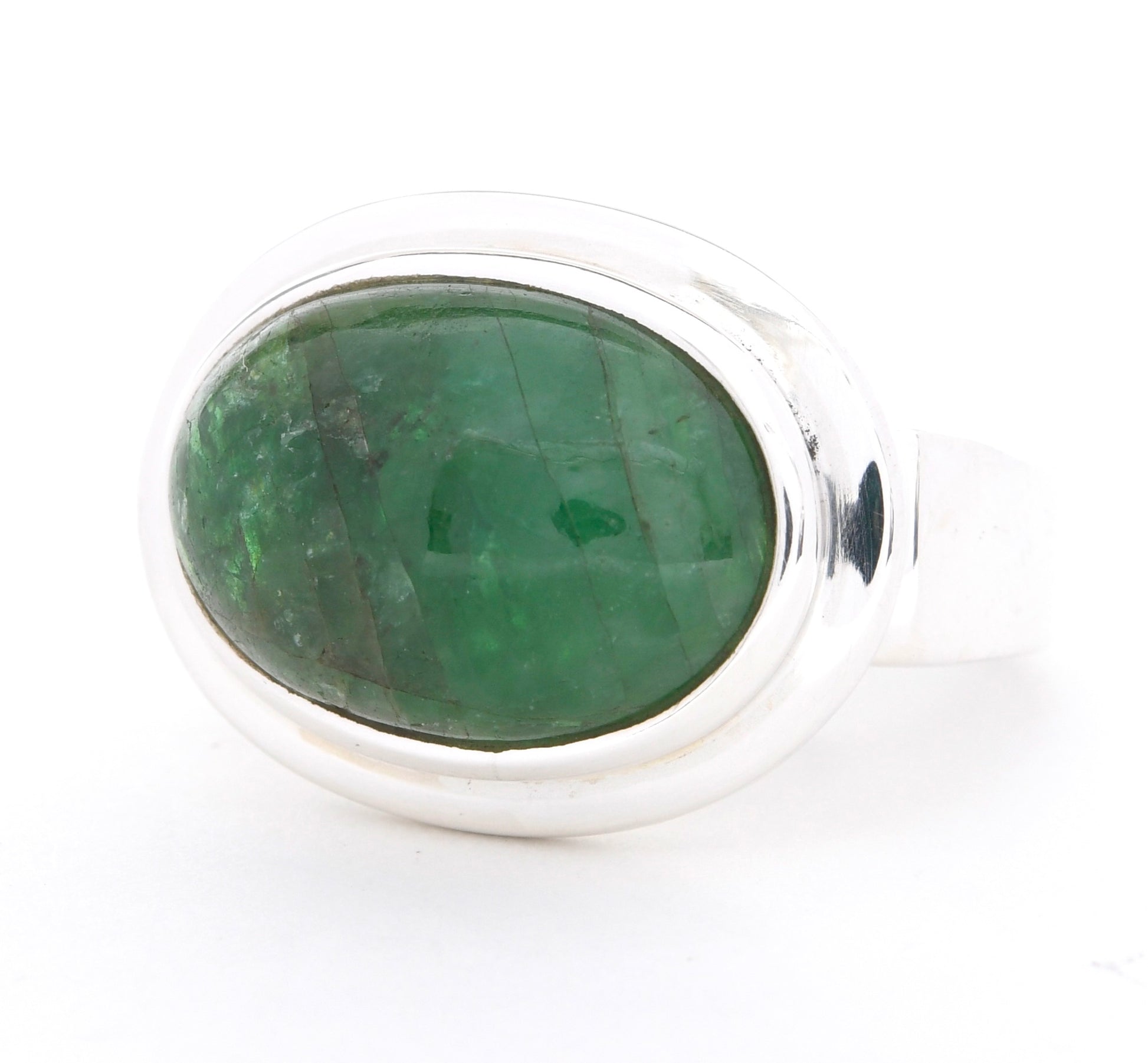 A single oval chrome diopside (Siberian emerald) in our heavy ring setting. Gemstone size approximately 12mmX10mm