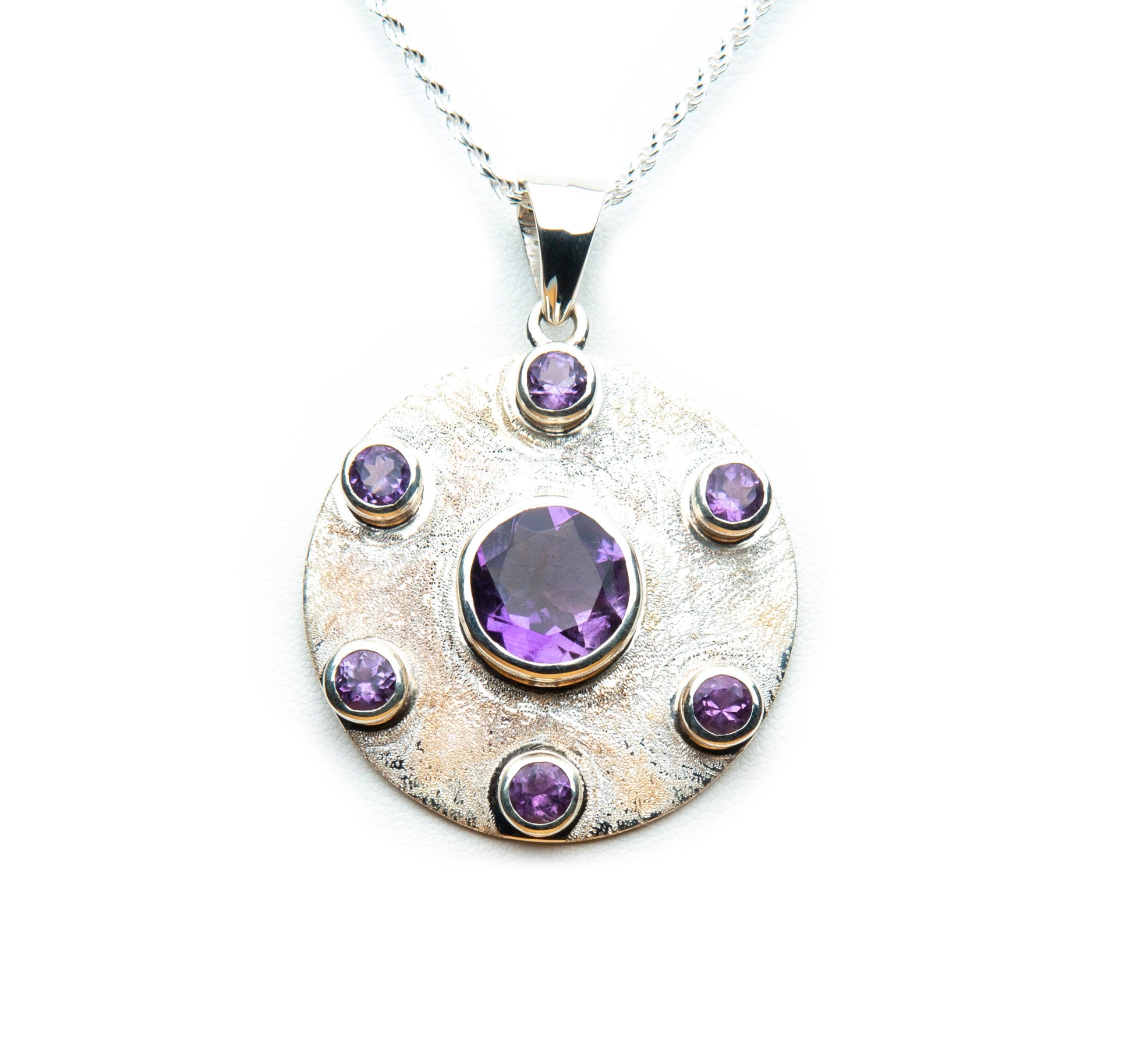 Brilliant faceted amethyst radiating amethyst! Diameter=1.5”