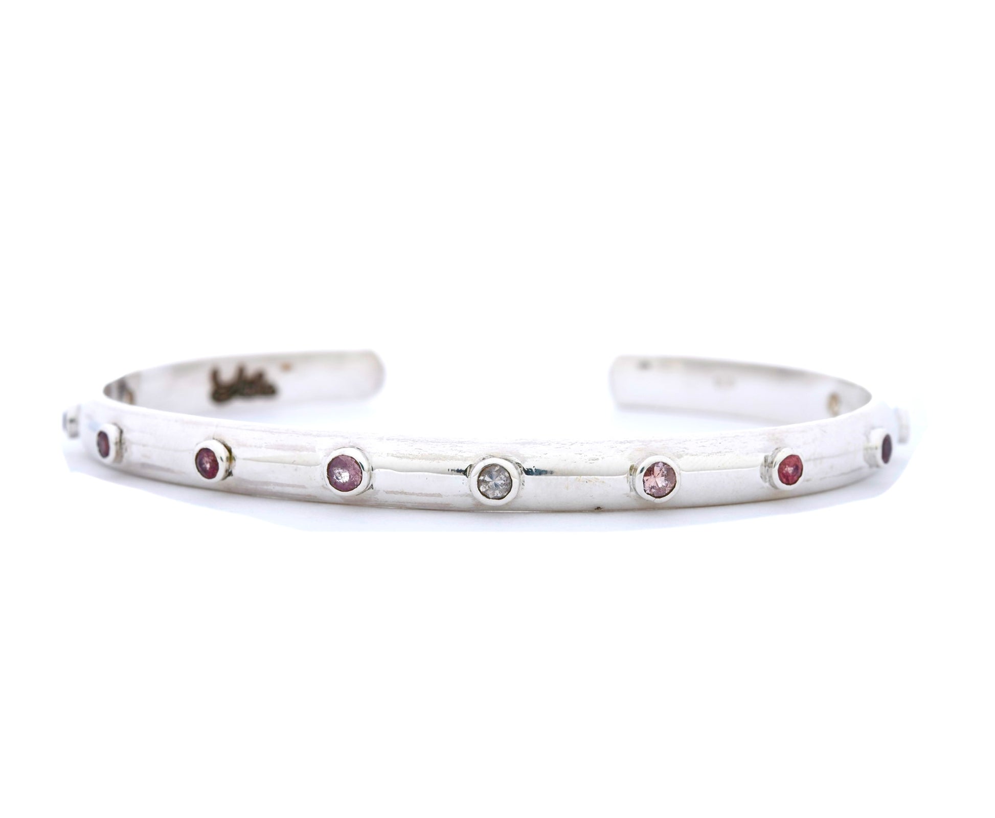Silver gem studded cuff (SGSC). Sterling silver bangle studded with sapphire. Size L diameter= 3.25” fits wrists 7”-7.5”